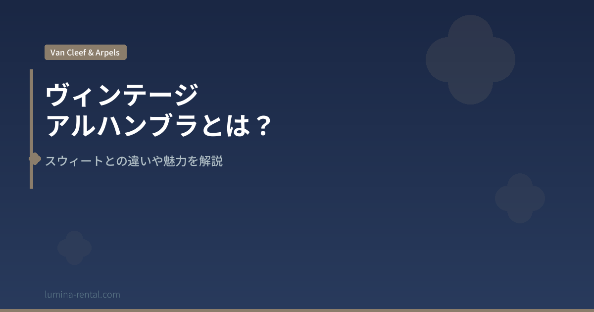 ブルベさんにヴァンクリーフを諦めてほしくない理由|WGアルハンブラという選択 2026.03.30 未分類 my11013207.0602@gmail.com LUMINA ヴァンクリーフはなぜ高い?価格の理由とブランド価値をわかりやすく解説 2026.03.15 未分類 my11013207.0602@gmail.com LUMINA アルハンブラは何歳まで?年齢層や似合う年代を解説 2026.03.15 未分類 my11013207.0602@gmail.com LUMINA ヴィンテージアルハンブラとは?スウィートとの違いや魅力を解説 2026.03.15 未分類 my11013207.0602@gmail.com LUMINA Sweet Alhambraとは?サイズや魅力を詳しく解説 2026.03.15 未分類 my11013207.0602@gmail.com LUMINA ヴァンクリーフのアルハンブラとは?人気の理由を解説 2022.11.20 未分類 my11013207.0602@gmail.com LUMINA